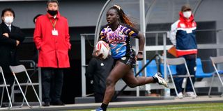 Grace Okulu during her first match for Nagato Blue Angels in a Sevens competition held on February 11-12 in Kitakyushu, Japan.