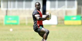 Kenya Sevens' captain Andrew Amonde in action during their training session at the RFUEA grounds on February 20, 2020 ahead of the fifth and sixth rounds of the 2019/20 Sevens World Series in Los Angeles and Vancouver.
