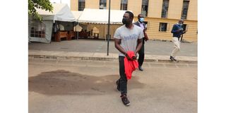 Former Kenya Sevens rugby player Alex Olaba at Milimani Law Court in Nairobi on May 4, 2021.