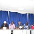 Former Harambee Stars players Sammy Owino "Kempes" (left), Samy Shollei (right), and former Harambee Starlets player, Charity Wangoma, Director of Bondeni Football Women Club men and women teams, and other football officials from Rift Valley Region, during a meeting held in Eldoret town, Uasin Gishu County on May 29, 2023. Owino donated footballs and training kits to 14 football teams.