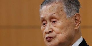 Tokyo 2020 president Yoshiro Mori listens a question from a journalist during a news conference in Tokyo on February 4, 2021.