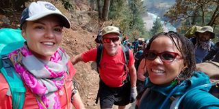 Dr Faith Mwende and fellow climbers go through small hikes of 100-metre to the Everest view point and back to Namche, Nepal, on April 19, 2023.