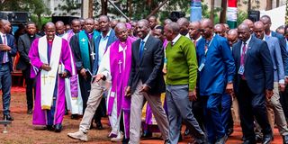 President William Ruto, National Assembly Majority Leader Kimani Ichung’wah, Africa Inland Church (AIC) Kenya Bishop Abraham Mulwa, among other leaders, during the Alliance High School Centenary Celebration in Kikuyu on March 1, 2026.