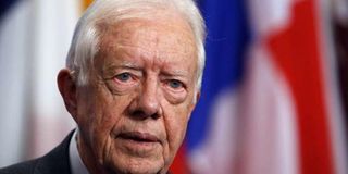 Former US president Jimmy Carter speaking to the media after a meeting with United Nations Secretary General Ban Ki-moon at United Nations headquarters in New York on October 25, 2007. FILE PHOTO | STAN HONDA |
