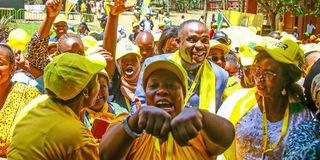 UDA Secretary-General Cleophas Malala interacts with party supporters at the Bomas of Kenya on October 13, 2023.