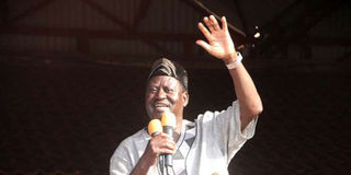 Cord leader Raila Odinga addresses the crowd during a joint memorial service of the late Jaramogi Oginga Odinga and Fidel Odinga at Jaramogi Oginga Odinga University Grounds on January 30, 2016.